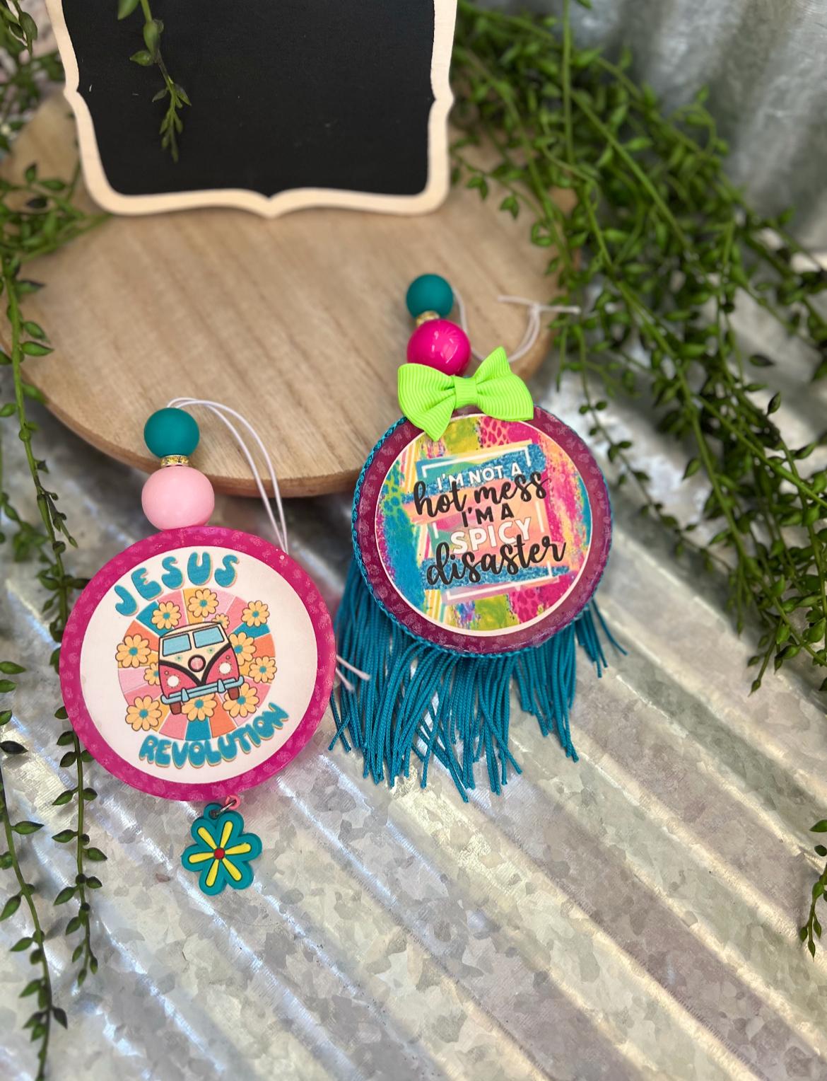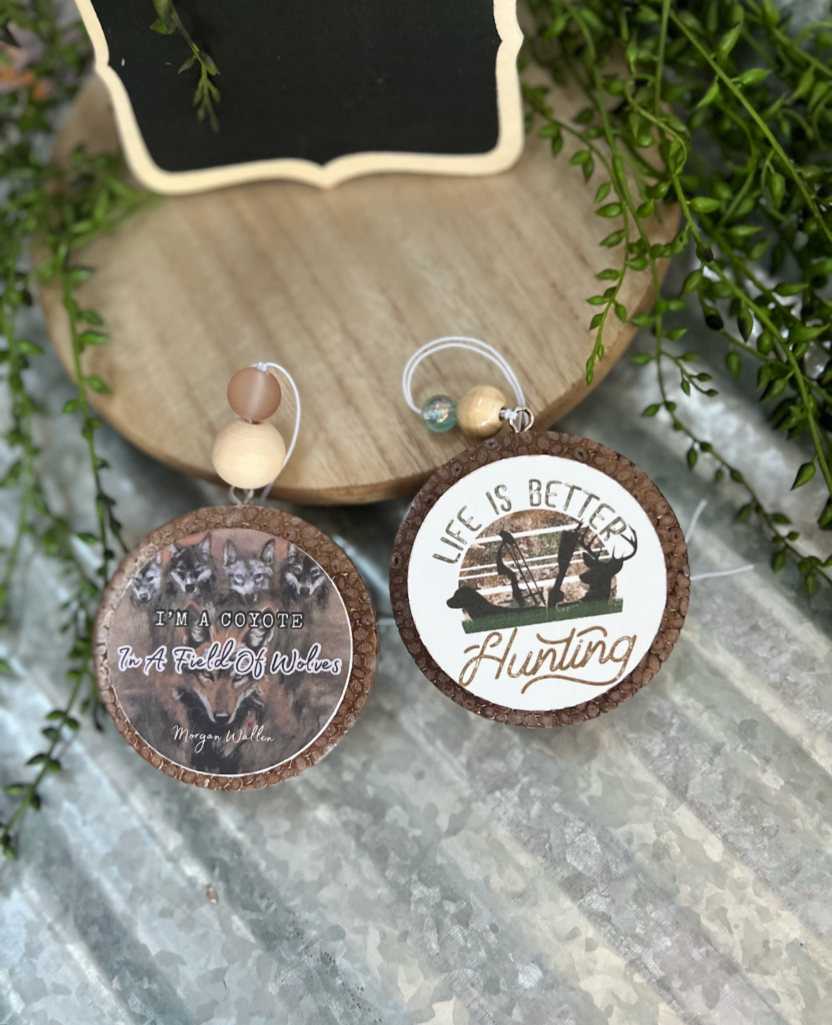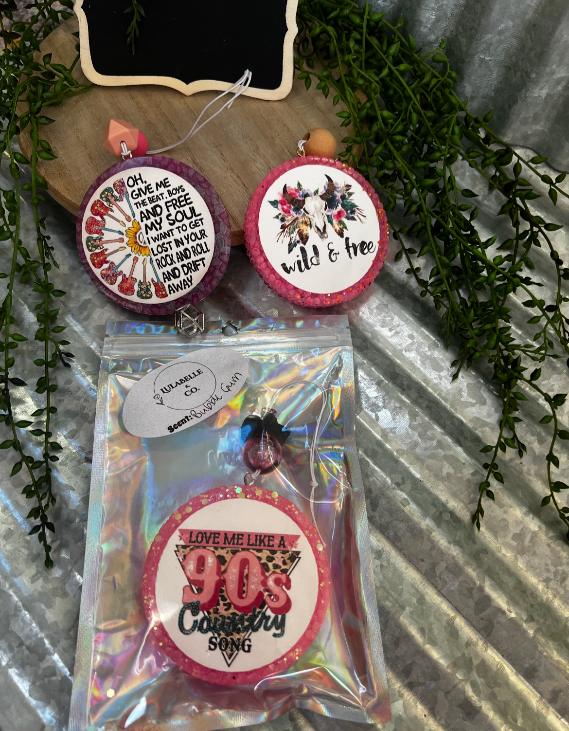 These fun, customizable air fresheners let you pick your favorite designs and fragrances, making every room or ride uniquely yours. All of our Freshies last up to 3-5 months depending on the season! The pictures below are examples of freshies that we have previously made. If you'd like to have a custom freshie- leave the theme for the picture such as favorite artist or favorite drink or what you'd like to have the picture as.(if you have a photo already picked out, you can send that to us via email or via our Facebook page!) Then add the scent that you'd like and if you're not sure, you can leave the type of scent your looking for such as- fruity, masculine, or freshness and we will take care of the rest!